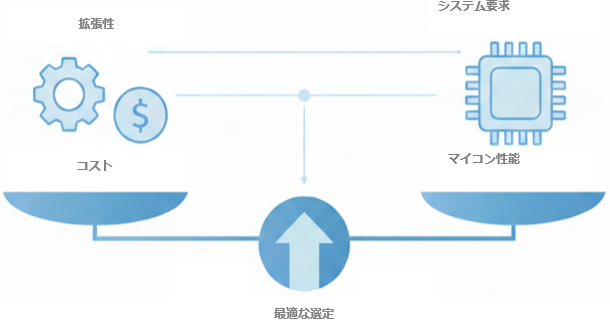 以下の観点で製品要求を整理すると、適正なマイコンが明確になります。