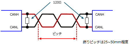 ツイストペア線と終端抵抗(通常120Ω)を正しく配置し、反射波による誤動作を防止