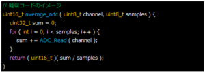複数回(例:8回、16回)ADC変換を行い、その平均値を採用します。ノイズはランダム性が高いため、平均することで相殺され、純粋な信号成分が浮かび上がります。